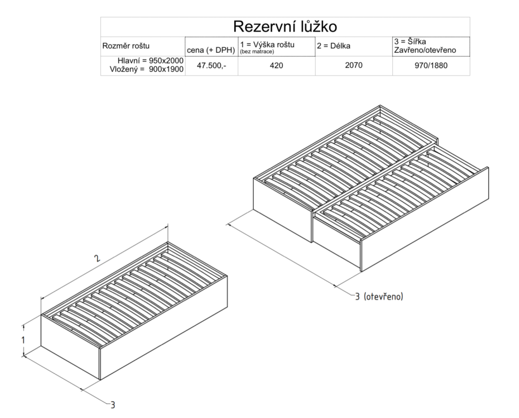 Nemusíte rozkládat matrace, povlíkat peřiny ani doma přechovávat postel navíc. Jednoduše výsuvné rezervní lůžko použijete jen tehdy, když potřebujete. Jinak zůstává úhledně uklizené i s ložním prádlem takzvaně „ready to use“.